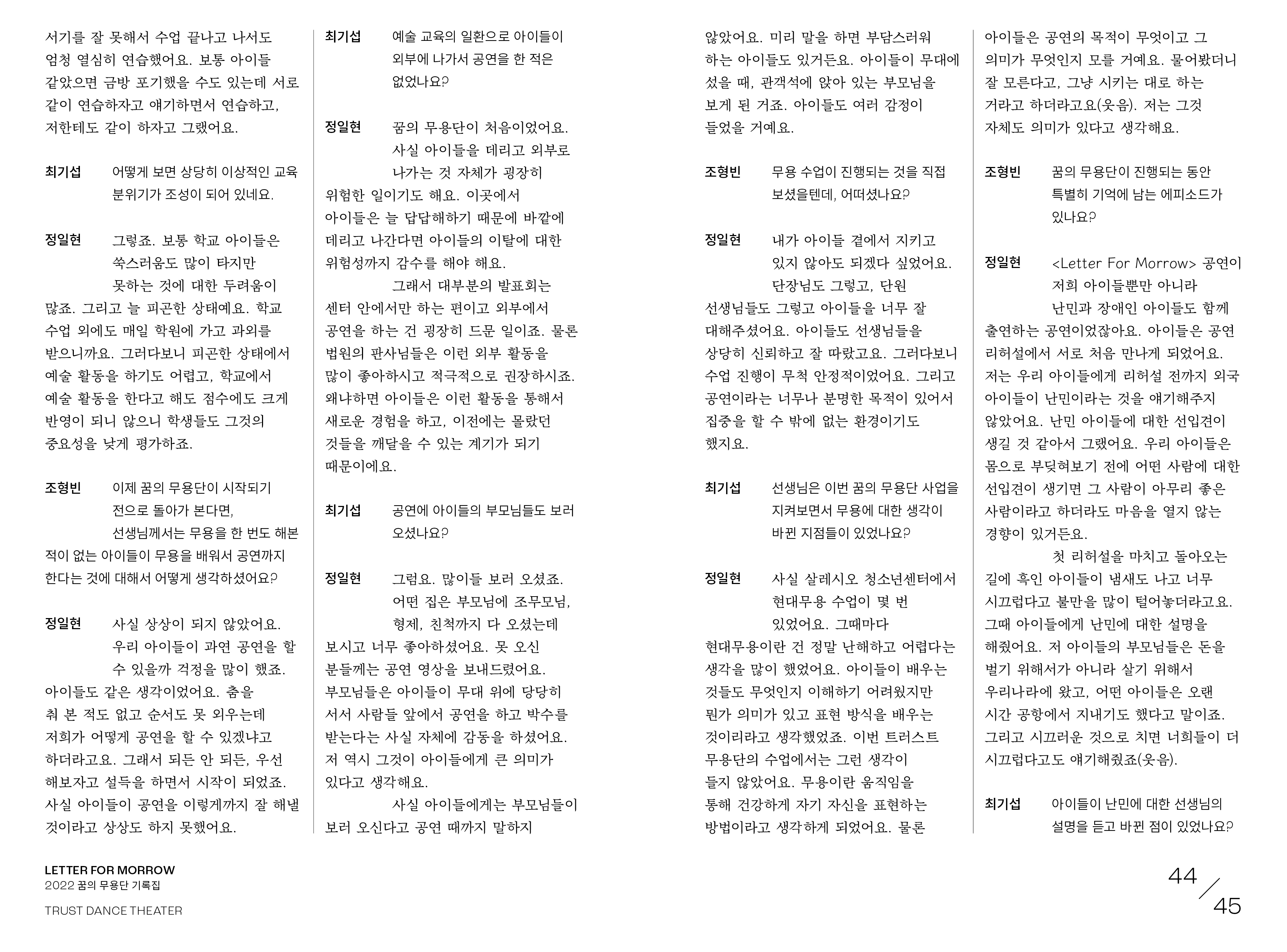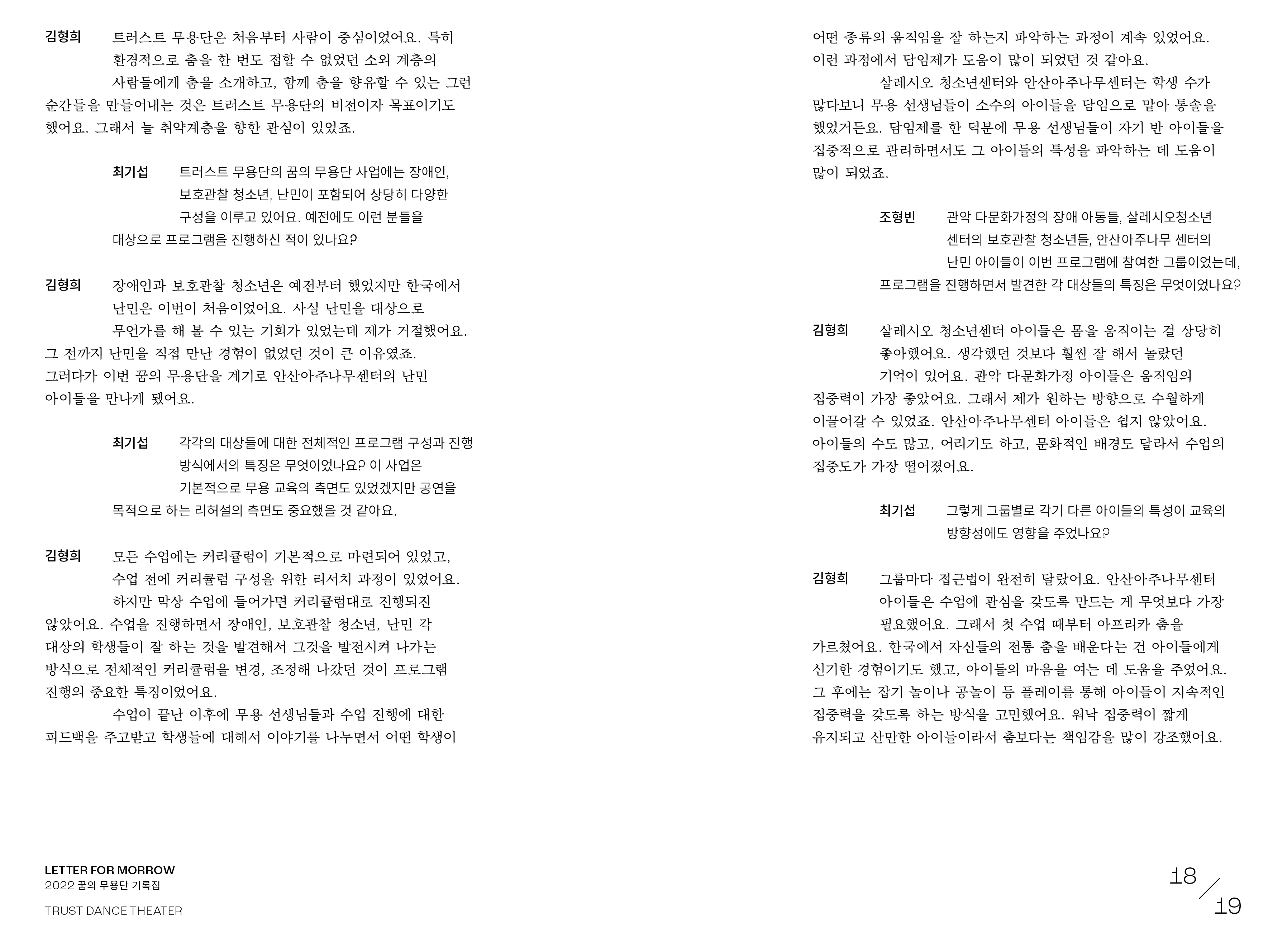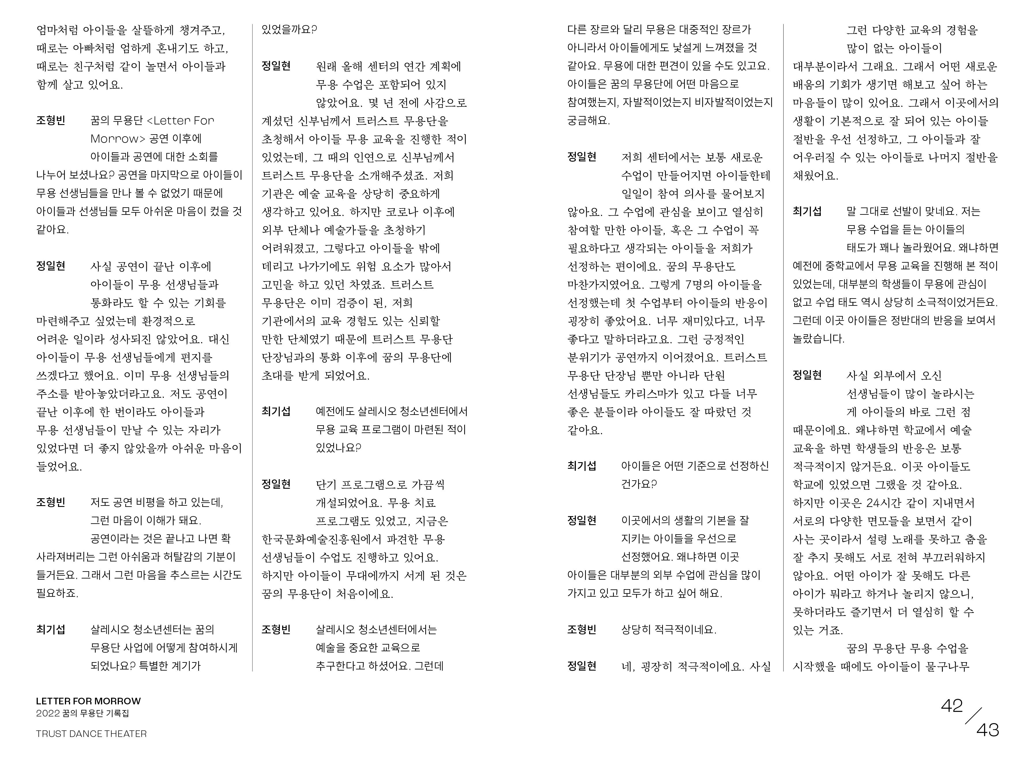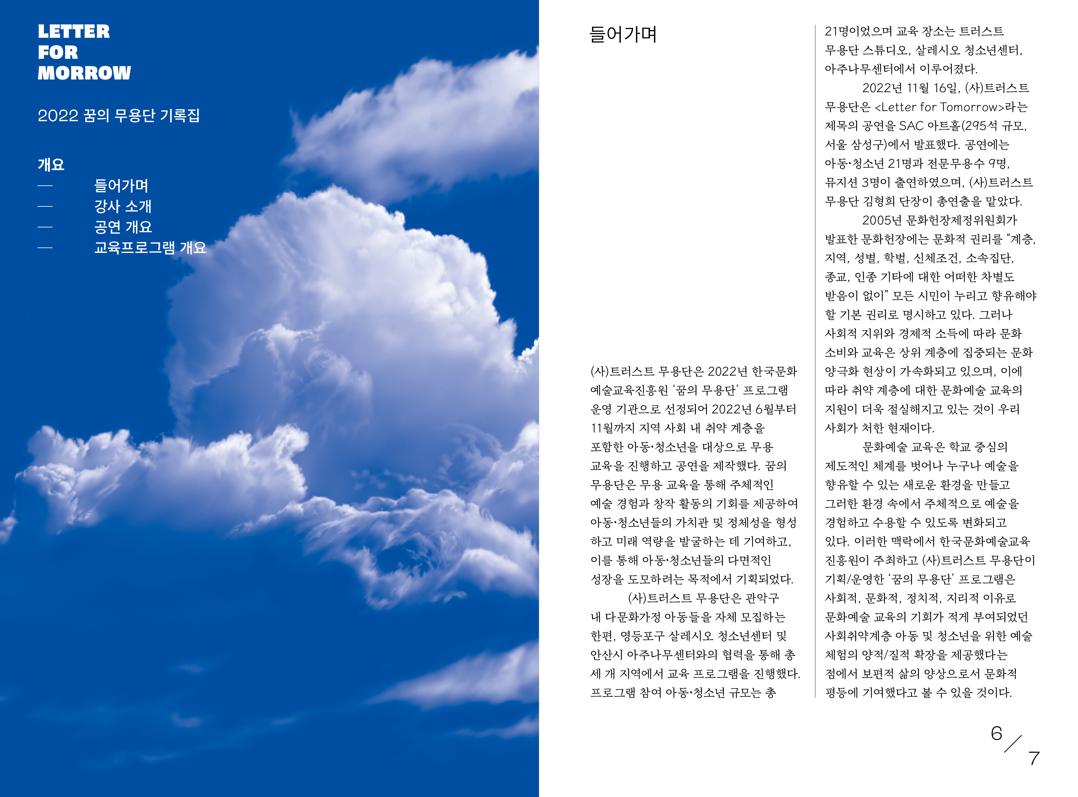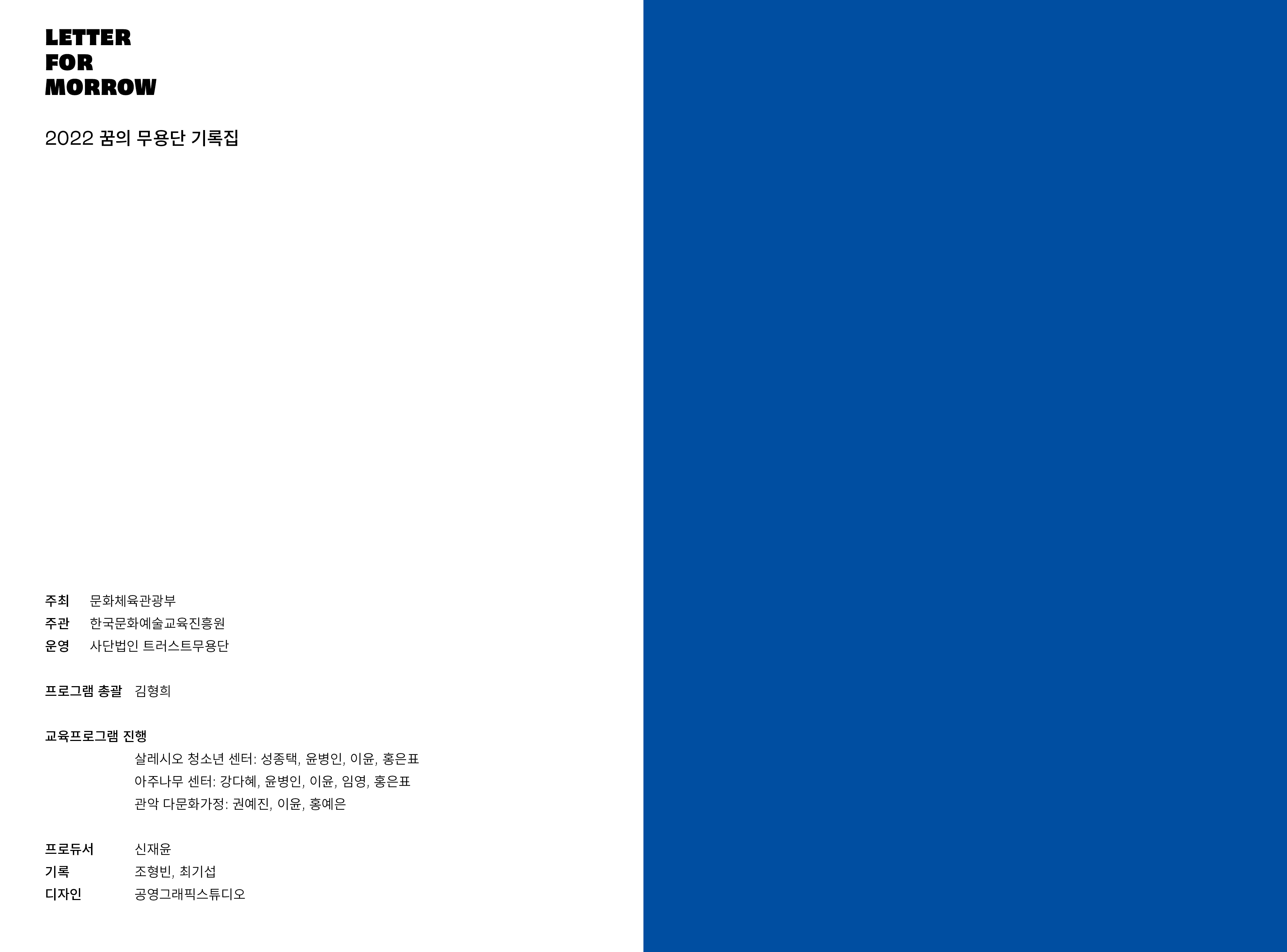 letter for morrow, 2022 꿈의 무용단 기록집